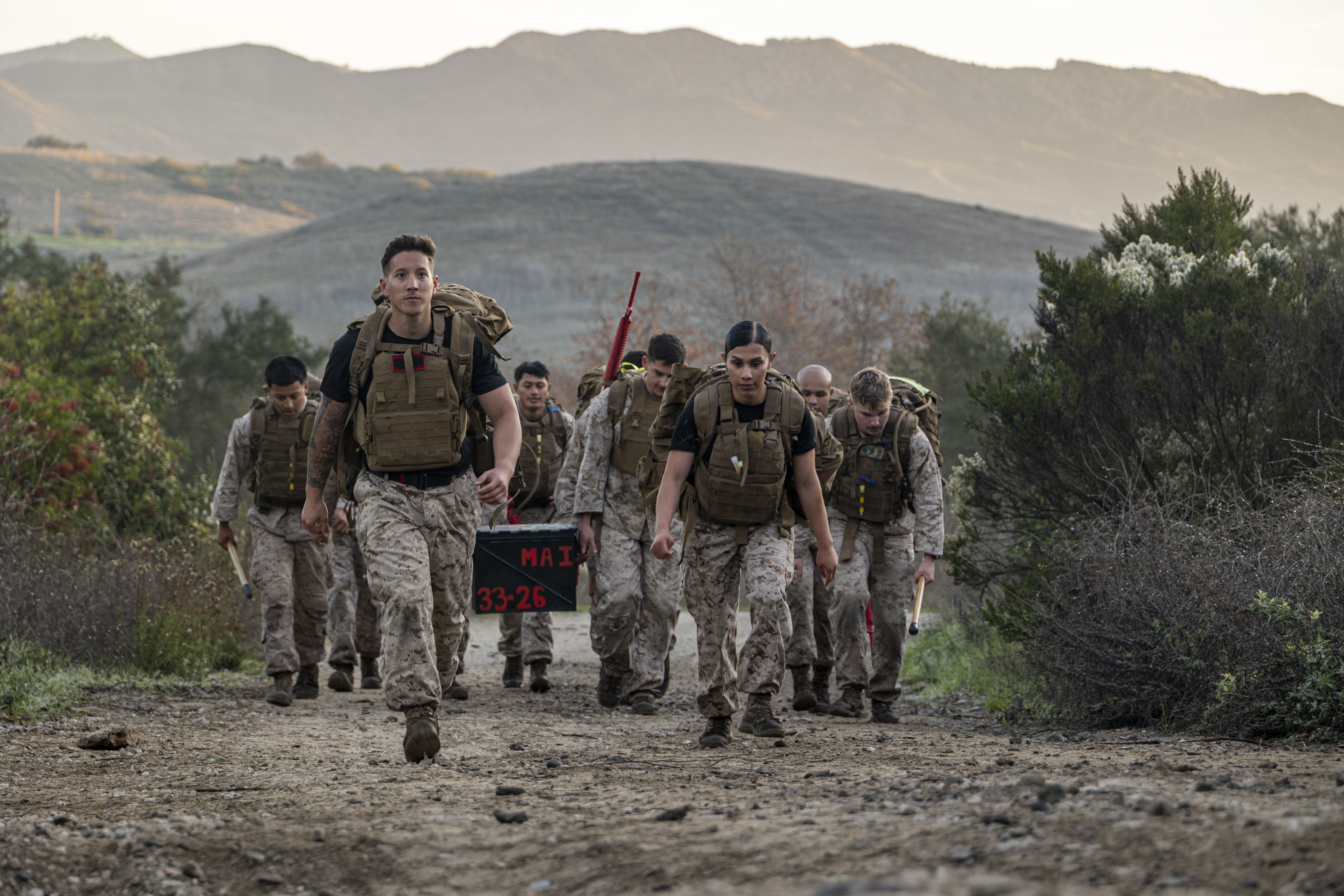 U.S. Marines participate in a supply run during a martial arts instructor course hosted by 1st Intelligence Battalion at Marine Corps Base Camp Pendleton, California, Dec. 18, 2025.